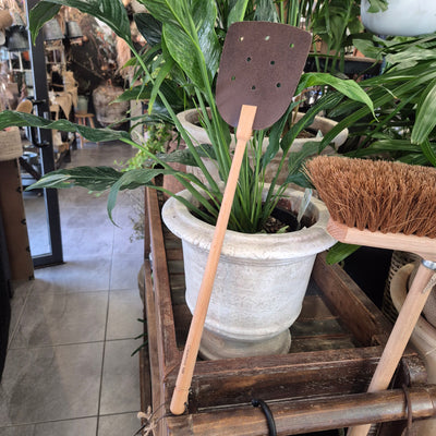 Regular price $60.00An effective way to keep pesky flies and bugs at bay! Constructed from quality sustainable oiled beech wood and hand finished perforated leather that quickly swings through the air. A handy leather loop allows for easy storage. Size - 51cm